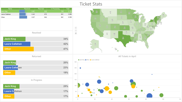Visualisierung von existierten Daten ist, wahrscheinlich, die wichtigste Phase im Erstellen von Dashboards. Für diese Aufgabe wird in Dashboards.WEB der interaktive Viewer für Anzeigen von fertigen Dashboards in Web-Applikationen verwendet. Viewer völlig anpassbar, schnell, benutzerfreundlich, unterstützt interaktive Elemente, den Vollbildmodus für Anzeigen vom vollen Dashboard oder von separaten Dashboards-Elementen, Umwandlung von analytischen Panels in PDF, Excel, PNG und andere Formate. Für volle Integration in die Projekte bieten wir viele Gestaltungs-Themen und Optionen für Anpassung des Aussehens und der Funktionalität der Anwendung.