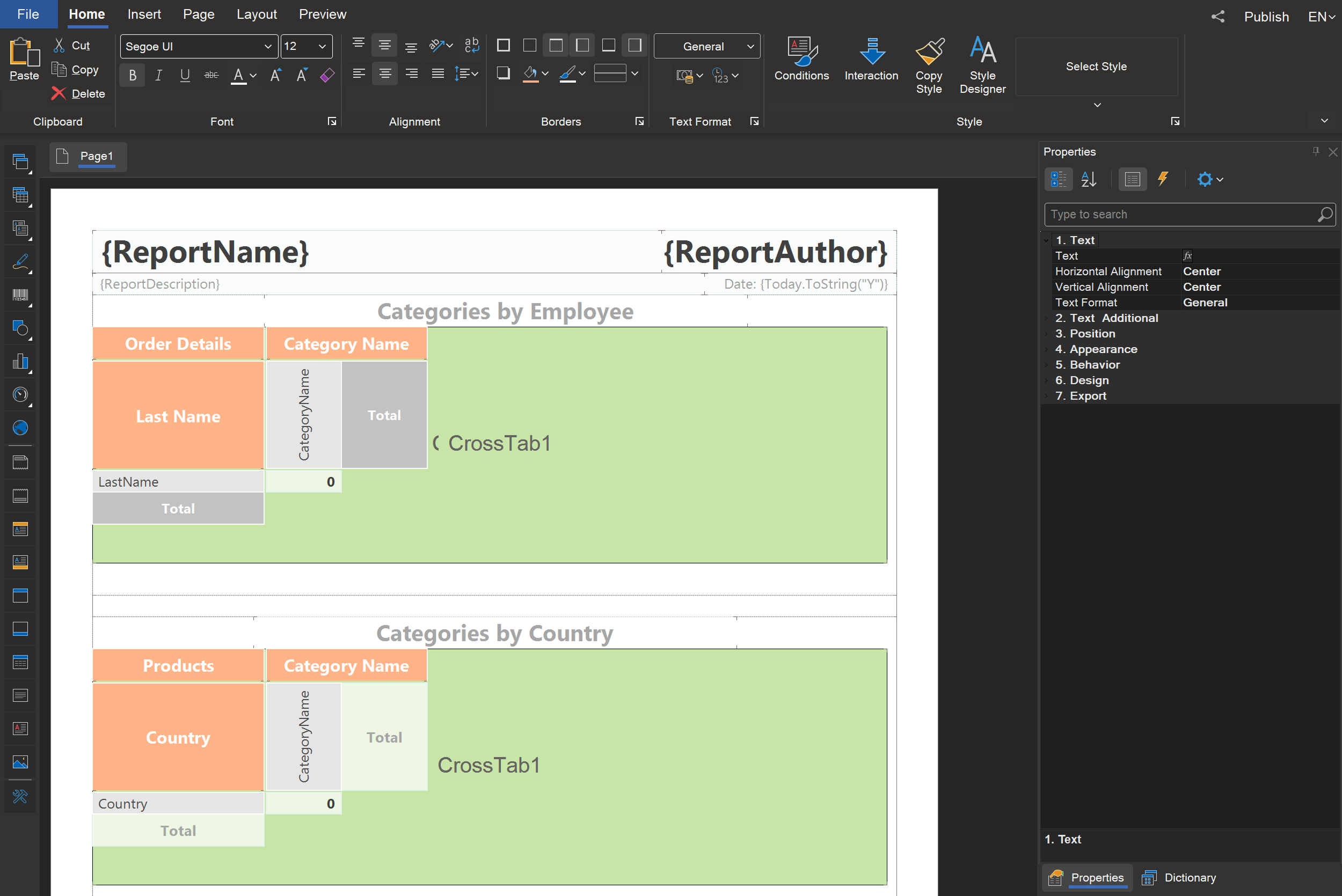 The report designer is an essential tool for creating, editing, and publishing reports, dashboards, and PDF forms. With the designer, you can drag and drop data onto the template page and use various components and options such as charts, maps, barcodes, expressions, and visual programming of events. All our products use a unified approach to creating reports, dashboards, and forms, and the tools have a universal interface. Just once learn the basics of working with a designer to create documents.