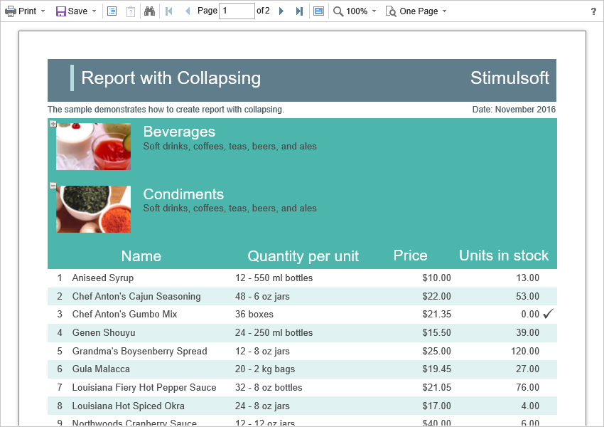 A report with dynamic collapsing is an interactive report where collapsing blocks can collapse/expand their content when clicking on the header of the block. The report elements which you can collapse/expand are highlighted with a special icon with [-] or [+].