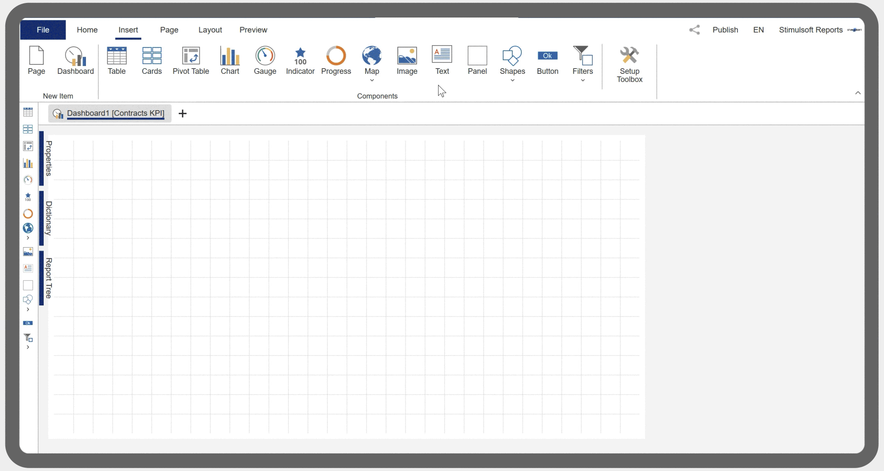 Mit Stimulsoft Dashboards.JS können Sie verschiedene Typen der analytischen Dashboards erstellen – KPI und HR, Verkaufs- und Versicherungs-Dashboards, sowie die Panels für Statistik und Marketing. Um die Arbeit schnell zu starten, bieten wir viele professionell erstellten Vorlagen, die in der Cloud-Dienstleistung Demo oder im Designer verfügbar sind.Fähigkeiten