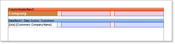 Построим отчет с выводом колонок в режиме Вниз затем вправо (Down Then Across). Создаем на странице два бэнда: бэнд Данные (Data) и бэнд Заголовок колонки (ColumnHeader). После чего, устанавливаем свойство Колонки (Columns) в значение 3 (т.е. три колонки). В свойстве Ширина колонки (ColumnWidth) указываем ширину одной колонки, а в свойстве Расстояние между колонками (ColumnGaps) - расстояние между колонками. Установите свойство Направление колонки (ColumnDirection) бэнда Данные (Data) в режиме Вниз затем вправо (DownThenAcross).