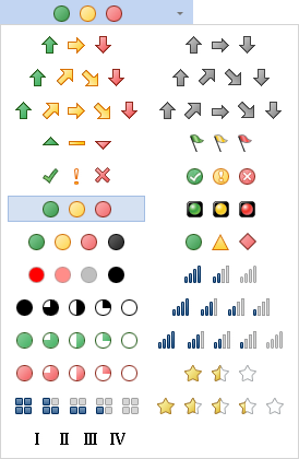 Меню выбора значков предоставляет возможность выбрать группу значков. На рисунке снизу представлено меню выбора группы значков: