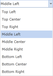 Поле Выравнивание (Alignment) предоставляет возможность изменить место расположение значка в пределах границ компонентов. На рисунке снизу представлено меню режимов выравнивания: