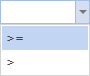 Суб условие, включает в себя: поле Операция (Operation), поле Тип (Type), поле Значение (Value). В данном случае, это первое Суб условие. Поле Операция (Operation) предоставляет возможность изменить вид операции первого суб условия. На рисунке снизу представлено меню операций:
