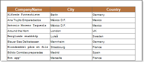 Как видно из рисунка, у текстовых компонентов в колонке CompanyName, расположенных на четных и нечетных строках, используются разные шрифты для отображения.