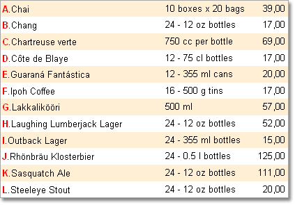 Кроме системной переменной Line, для нумерации списка можно использовать еще две системные переменные: LineABC и LineRoman. Первая возвращает алфавитный индекс вместо номера строки. Вторая - строковое представление номера римскими цифрами. Например, отчет с использованием системной переменной LineABC будет выглядеть так: