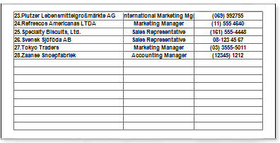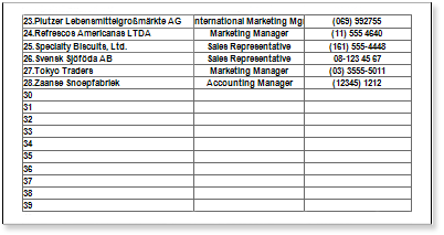 При построении отчета, в шаблоне которого используется бэнд Пустые данные (EmptyBand), можно задать нумерацию строк. Для примера, рассмотрим отчет в котором заполненные строки пронумерованы, а пустые без нумерации: