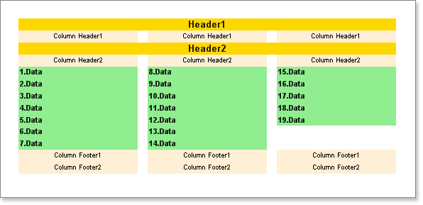 This mode is similar to the AcrossThenDown mode. All bands are output in the same order as they are placed on a page. However, if the PrintOnAllPages property of the Footer band is set to true, then all Footer bands are output in the same order as they are placed on page. If the PrintOnAllPages property of the Footer band is set to false, then only Column Footer bands are output and the Footer bands are ignored.