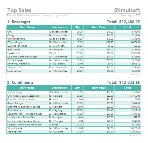 Very often, in a report with groups, it calculates the total for each of these groups. Often, you need to sort these groups based on the calculated total. To do this, you should do the following: