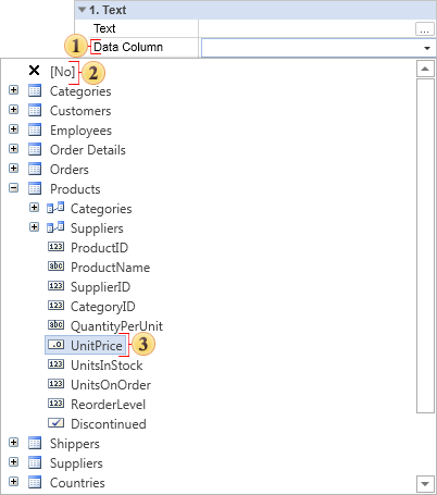 The DataColumn property. This property is used to indicate from which data field the RTF text should be loaded. Click the button beside to select the relevant column.