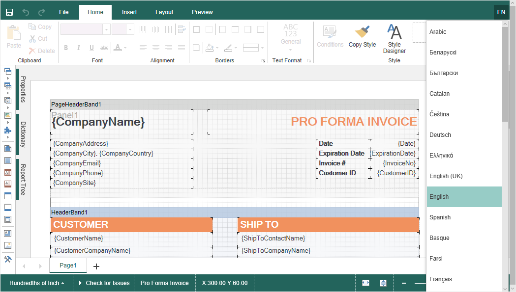 Если задано значение для свойства Localization, то при запуске дизайнера отчетов всегда будет применяться указанная в этом свойстве локализация. Если значение свойства не задано, то будет автоматически загружена локализация, выбранная из списка доступных локализаций на панели дизайнера отчетов.