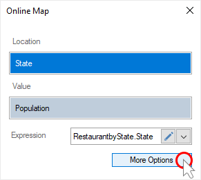По умолчанию, значения географических объектов отображаются на карте в виде пузырьков. Их также можно отобразить в виде круговой диаграммы, значения, значения со значком.