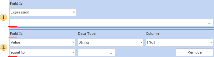 В этом поле указывается выражение, которое должно вернуть булевского значение. Например, выражение на C#: