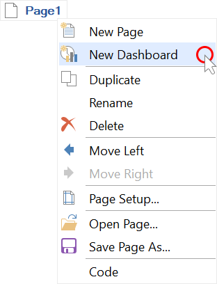 Выбрать команду Новая панель индикаторов (New Dashboard), в контекстном меню заголовка страницы или панели индикаторов.