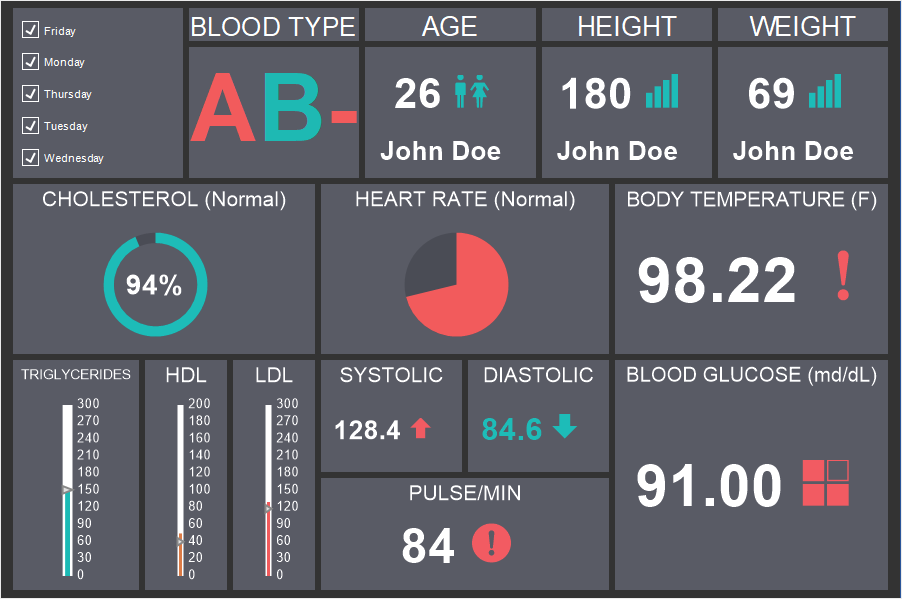 Допустим есть панель индикаторов, которая отображается результаты обследования пациентов клиники.