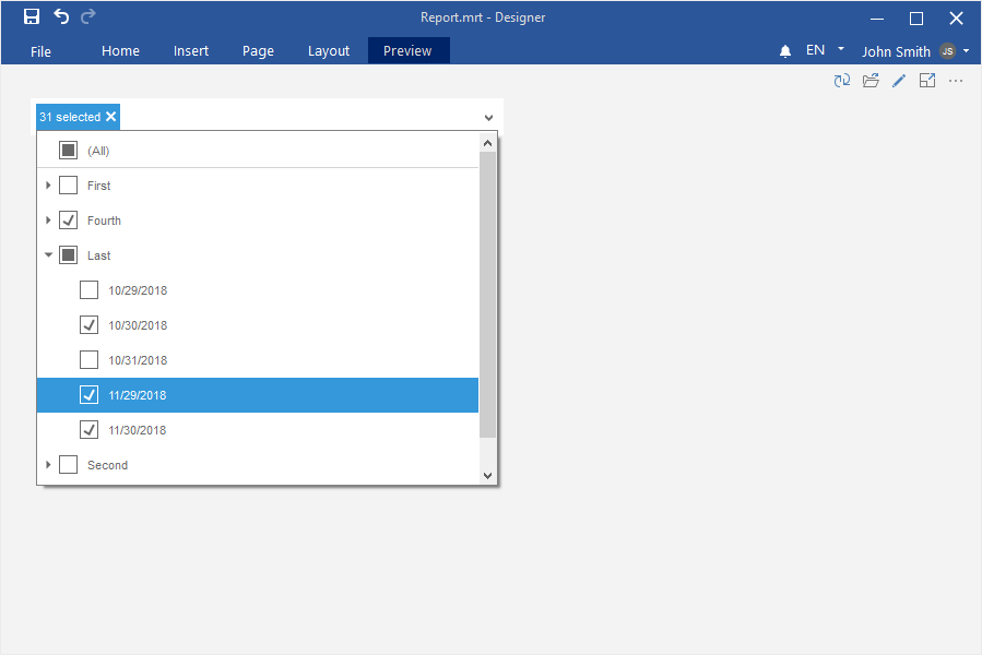 Шаг 4: Выполнить щелчок по категории Фильтры (Filters) на инструментарии дизайнера отчетов или на вкладке Вставить (Insert);