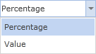 Поле Тип (Type) предоставляет возможность изменить тип значения первого суб условия. Доступно два значения: Процент (Percentage) и Значение (Value). На рисунке снизу представлено меню выбора типа значения: