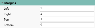 Установка произвольных полей осуществляется на панели свойств. В зависимости от типа интерфейса, на панели может быть представлено одно свойство Поля (Margins), и в этом случае, значениями данного свойства будут четыре числовых значения от 0 и больше, указанные через разделитель ";"